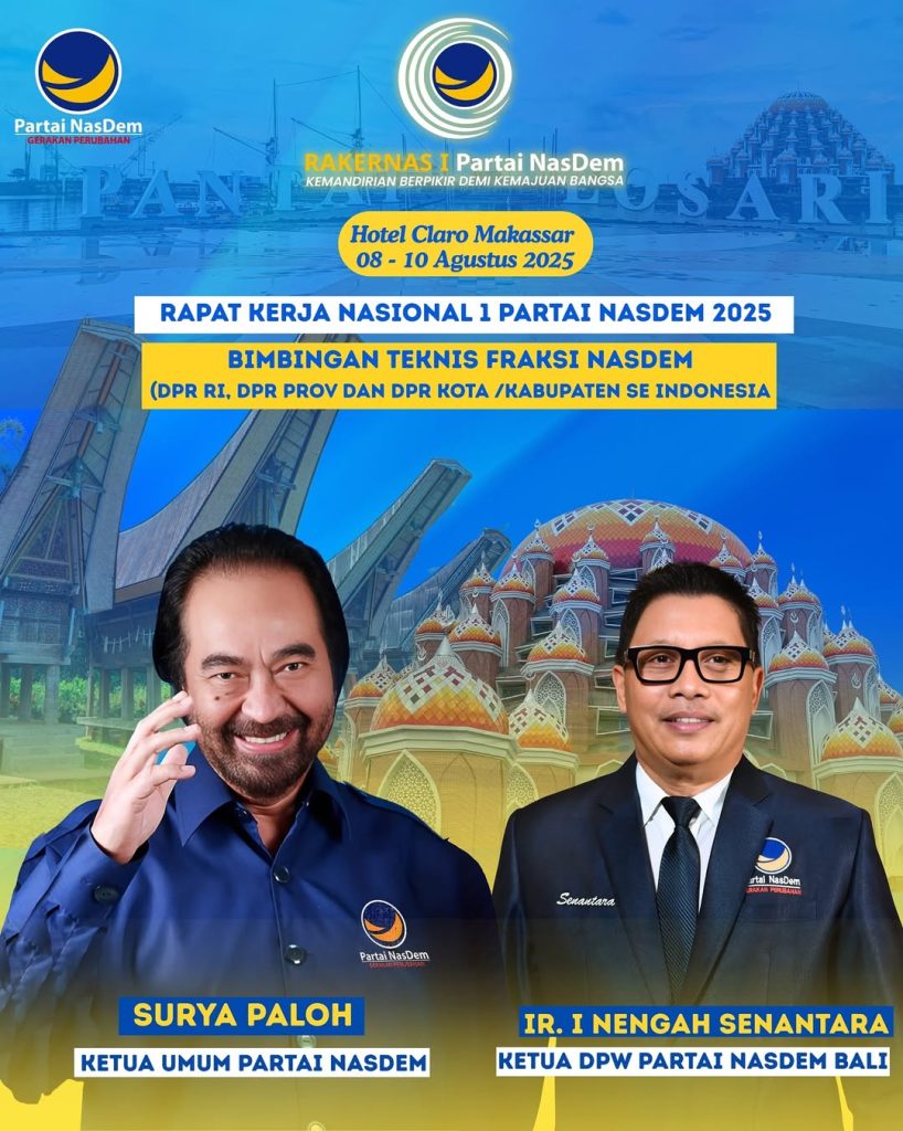 Foto: Dewan Pimpinan Wilayah (DPW) Partai NasDem Provinsi Bali menyatakan kesiapan penuh untuk mengikuti dan menyukseskan Rapat Kerja Nasional (Rakernas) I Partai NasDem yang akan digelar di Makassar, Sulawesi Selatan, pada 8–10 Agustus 2025. Denpasar Dewan Pimpinan Wilayah (DPW) Partai NasDem Provinsi Bali menegaskan komitmennya untuk menyukseskan Rapat Kerja Nasional (Rakernas) I Partai NasDem yang […]